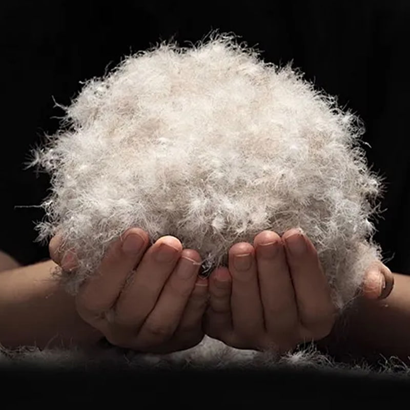 Maingat na pinipili ang mga core down-producing area ng tiyan at leeg ng gray duck, at ginagamit ang scientific ratio na proseso para pagsamahin ang 50% high-loft grey duck down at 50% de-kalidad na mga hibla ng balahibo upang bumuo ng natural na mainit-init na composite na istraktura. Ang pababa ay nasa hugis ng isang three-dimensional na kumpol ng tambo, at ang ibabaw ng bawat pababa ay makapal na natatakpan ng isang tumpak na triangular na pore grid upang makabuo ng isang dynamic na temperatura control microcirculation system - kapag ito ay malamig, ang hibla ay natural na kulot upang bumuo ng isang air insulation layer, at kapag ito ay mainit, ang hibla ay umaabot upang i-promote ang moisture discharge, na nakakamit ng dual intelligent na regulasyon ng temperatura. Ang kakaibang hollow fiber na istraktura ay mahusay na nakakasipsip ng init na ibinubuga ng katawan ng tao, habang bumubuo ng natural na thermal insulation barrier, na epektibong humaharang sa pagsalakay ng mga panlabas na malamig na agos, at nagdadala lamang ng tamang liwanag at mainit na karanasan.