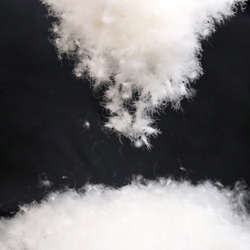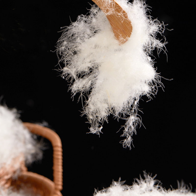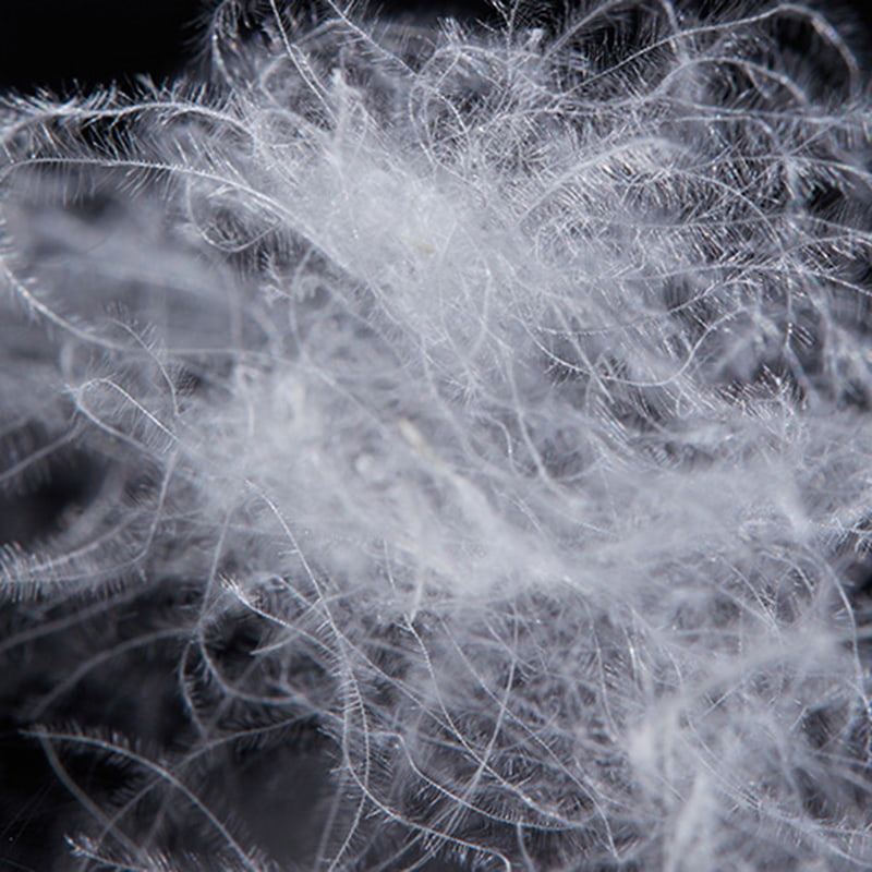 Nagmula sa tiyan ng pato, leeg, pakpak at iba pang de-kalidad na bahaging nagpapababa, ang pababa ay nagpapakita ng natural na parang tambo na kumpol-kumpol na hugis na may mahusay na fluffiness; na pupunan ng tumpak na proporsiyon na mga patumpik-tumpik na balahibo, ito ay bumubuo ng isang three-dimensional na istrakturang nakaka-lock ng temperatura. Bilang isang natural na hibla ng protina ng hayop, ang istraktura ng pababang bola ay siksik na natatakpan ng milyun-milyong nano-scale triangular pores, na bumubuo ng isang dynamic na sistema ng paghinga. Kapag ito ay mainit, ang hibla ay umaabot upang maglabas ng enerhiya ng init, at kapag ito ay malamig, ito ay awtomatikong lumiliit upang mai-lock ang init. Habang mahusay na sumisipsip ng init ng katawan, hinaharangan nito ang pagtagos ng panlabas na malamig na hangin upang makamit ang all-weather intelligent temperature control. Banayad, malambot at mainit, malapit sa katawan nang walang pressure.
