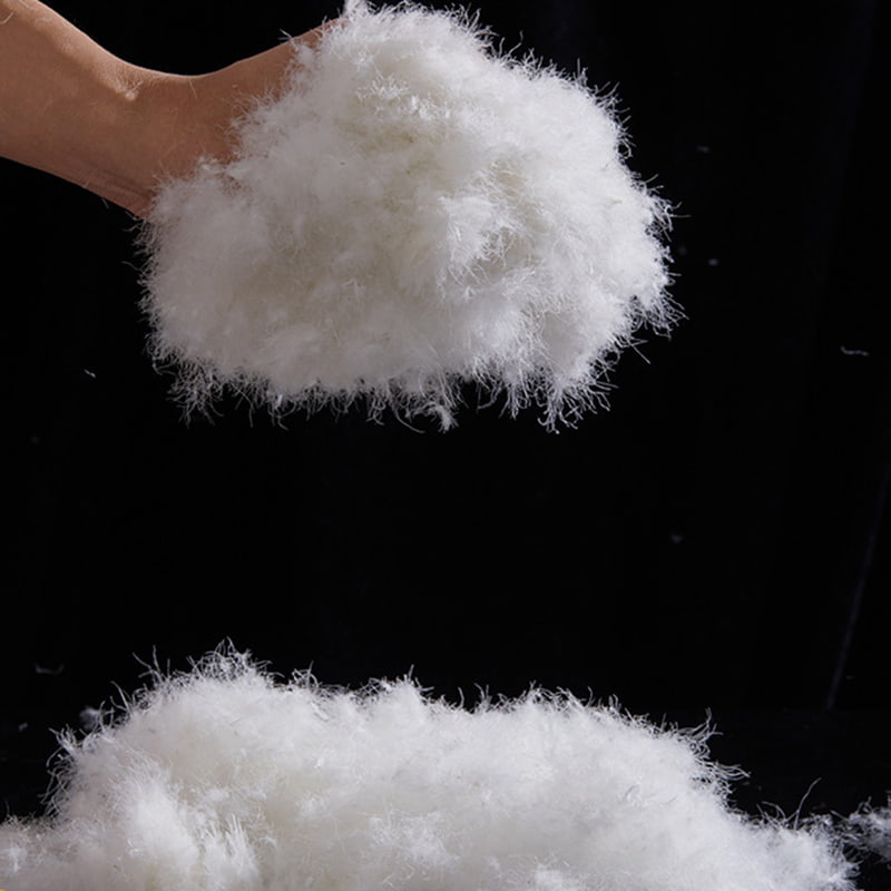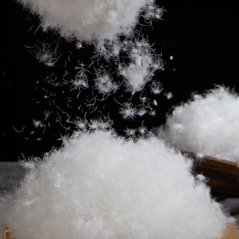 Nagmula sa mga core down-producing area ng tiyan, leeg at mga pakpak ng mataas na kalidad na puting gansa, ang natural na pababa ay nagpapakita ng kakaibang anyo ng mga pinong kumpol tulad ng reed catkins, na bumubuo ng golden ratio na may mga patumpik-tumpik na balahibo. Bilang isang bihirang hibla ng protina ng hayop, ang ibabaw ng bawat hibla ng goose down ay makapal na natatakpan ng milyun-milyong nano-scale na triangular na pores. Ang mga tumpak na pores na ito ay parang mga micro-temperature control device na maaaring matalinong ayusin ang fiber gap ayon sa ambient temperature upang bumuo ng isang dynamic na temperatura control network. Kapag ang mainit na hininga na natural na ibinubuga ng katawan ng tao ay tumama sa pababang layer, ang pore structure ay mahusay na nakakandado sa temperatura sa pamamagitan ng molecular-level adsorption, at kasabay nito ay bumubuo ng isang three-dimensional na heat insulation barrier, na epektibong humaharang sa invasion path ng panlabas na malamig na hangin, na nagdadala ng lahat-ng-panahon na patuloy na karanasan sa pangangalaga sa temperatura.