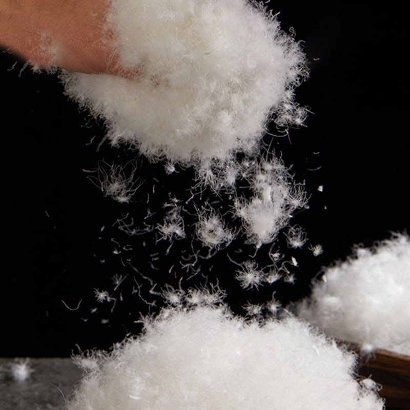 Nagmula sa mga core down-producing area ng tiyan, leeg at mga pakpak ng mga piling puting gansa, ang natural na pababa ay may maselan na parang tambo na kumpol-kumpol na istraktura, na bumubuo ng siyentipikong ratio na may mga patumpik-tumpik na balahibo. Bilang isang modelo ng high-end na animal protein fiber, ang bawat goose down fiber ay naglalaman ng sampu-sampung milyong micro triangular pores. Ang mga tumpak na nakaayos na nano-scale na mga pores na ito ay may matalinong mga katangian ng pagkontrol sa temperatura at maaaring autonomously ayusin ang fiber gap na may mga pagbabago sa ambient na temperatura upang bumuo ng isang dynamic na temperatura control system. Kapag ang init na enerhiya na ibinubuga ng katawan ng tao ay dumampi sa ibabang layer, mabilis na nasisipsip ng pore structure ang init sa pamamagitan ng capillary effect, habang gumagawa ng multi-level na thermal insulation barrier upang epektibong harangan ang daanan ng pagtagos ng panlabas na malamig na hangin at matiyak ang pare-parehong temperatura at komportableng karanasan.